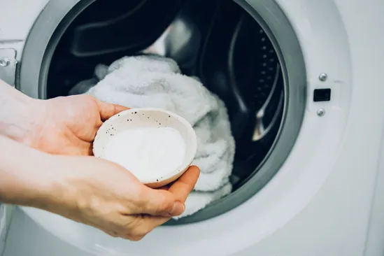 یکی دیگر از راهکارهای شستن لباس سفید، استفاده از جوش شیرین است. برای این منظور میتوانید مقدار از جوش شیرین را به شوینده خود اضافه کنید و آن را داخل ماشین لباسشویی بریزید